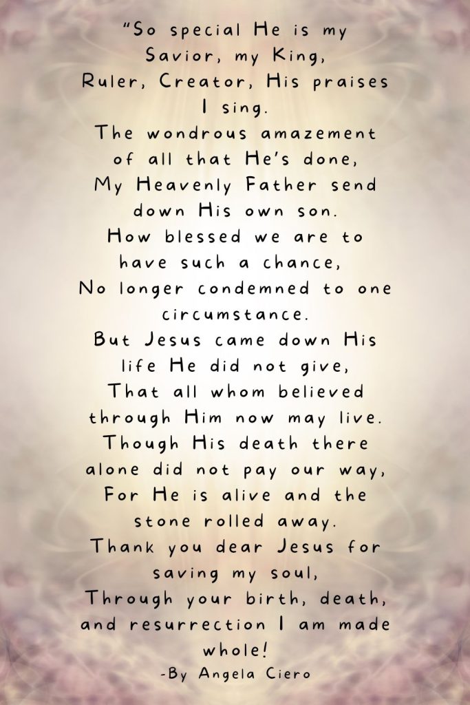 The following poems are all haikus, written by Grant Getts. Haikus may be short, sweet and to the point, but they can be powerful when spoken from the heart, and about someone as special to us as Jesus Christ.